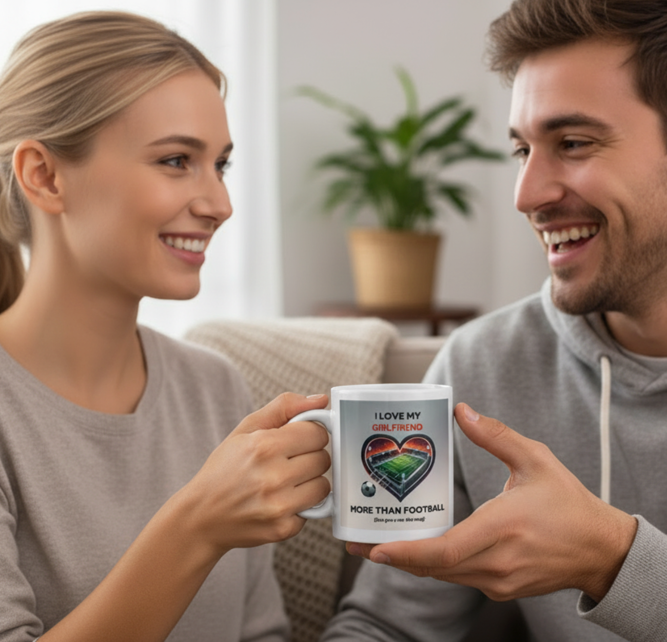 This isn't just another generic mug - it's a conversation starter, a relationship inside joke, and a daily reminder of your bond. Every morning coffee becomes a moment of connection and laughter. Plus, when his football mates see it, they'll all want one from their girlfriends!